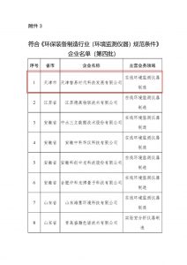 ????天津智易時代科技發(fā)展有限公司成功入選“《環(huán)保裝備制造行業(yè)(環(huán)境監(jiān)測儀器)規(guī)范條件》企業(yè)名單”。詳情如下: